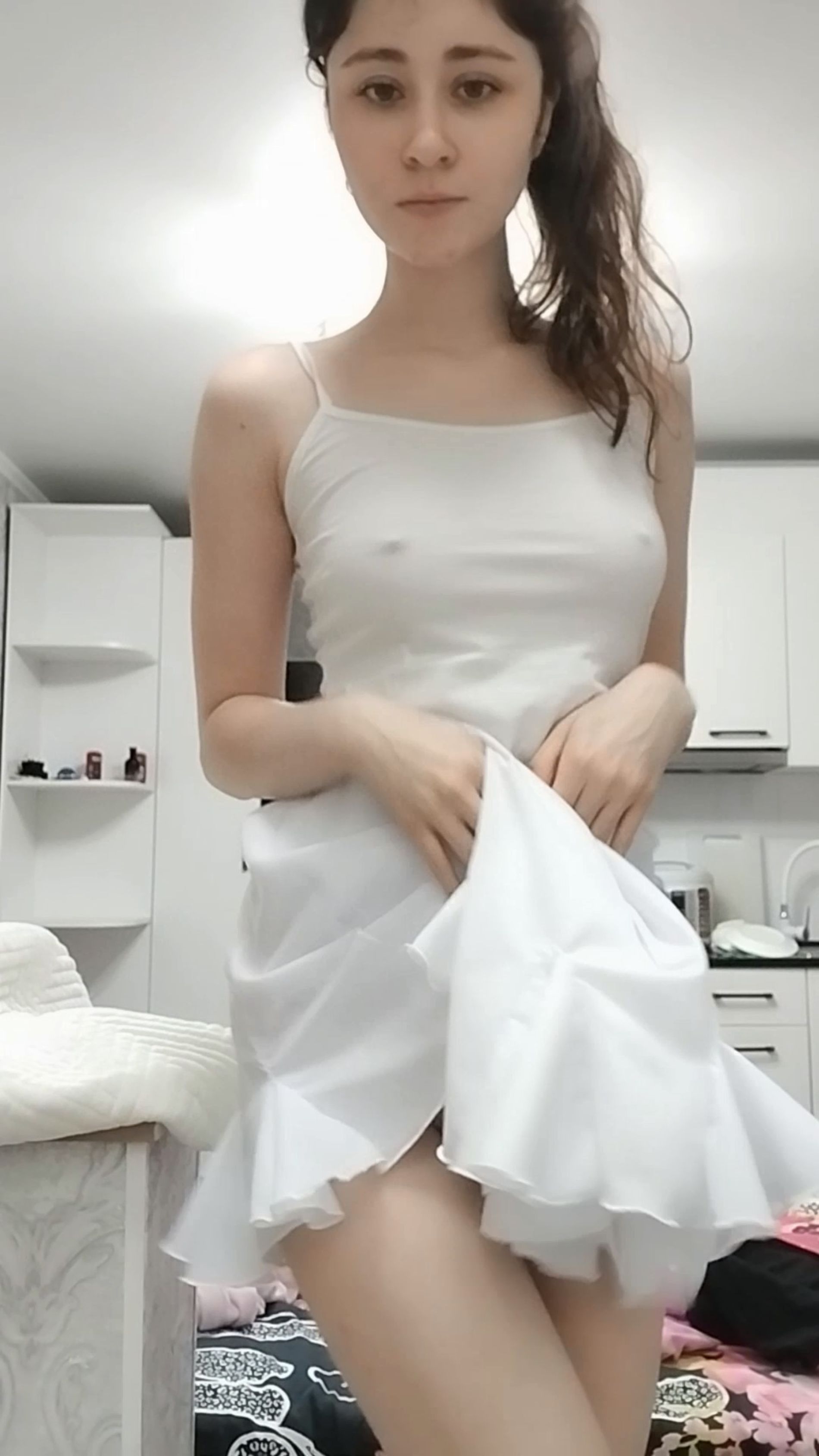 Голенькой очень хороша, но и сосочки в легком платье сексуально торчат