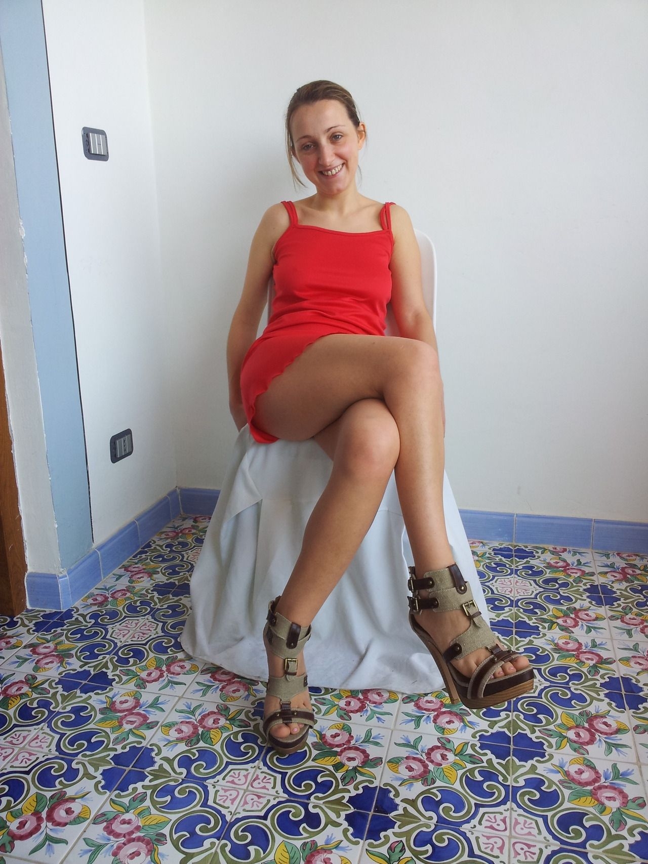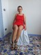 Девушка сняла красное платьице