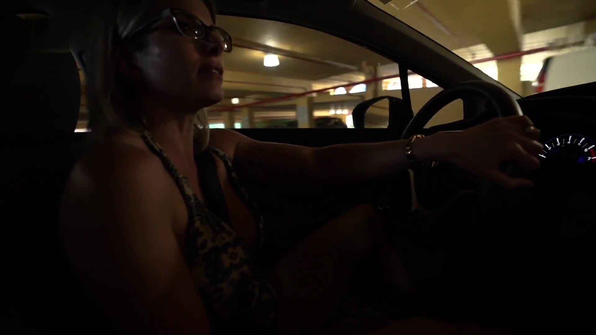 дамочка в очках оголяет свои прелести в авто , а затем голышом позирует в отеле.