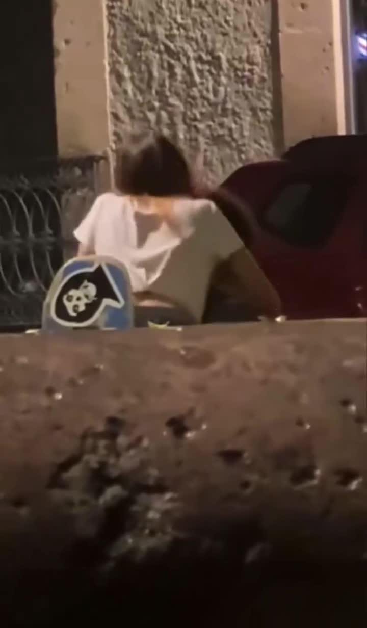 Какие то ребята снимают секс красивой парочки прямо на улице европейского города