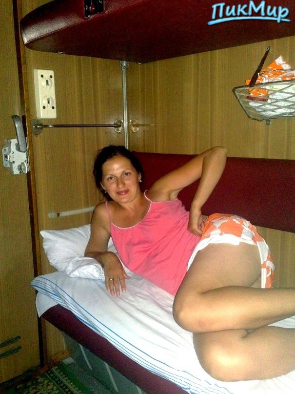 дамочка раздевается и показывает себя голой прямо сидя на полке купе вагона
