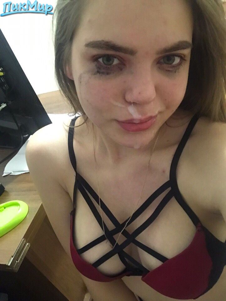 шлюха любит фоткаться со спермой от разных минетов на своём лице