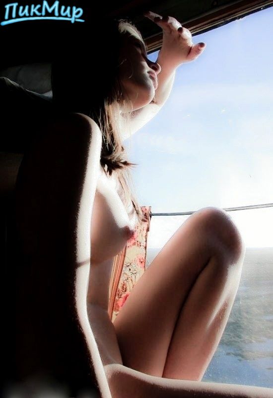 голая худенькая девочка позирует голой у окна одного купе скорого поезда