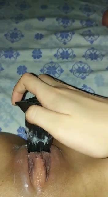 Во время разлуки с мужем трахает себя искуственным членом.
