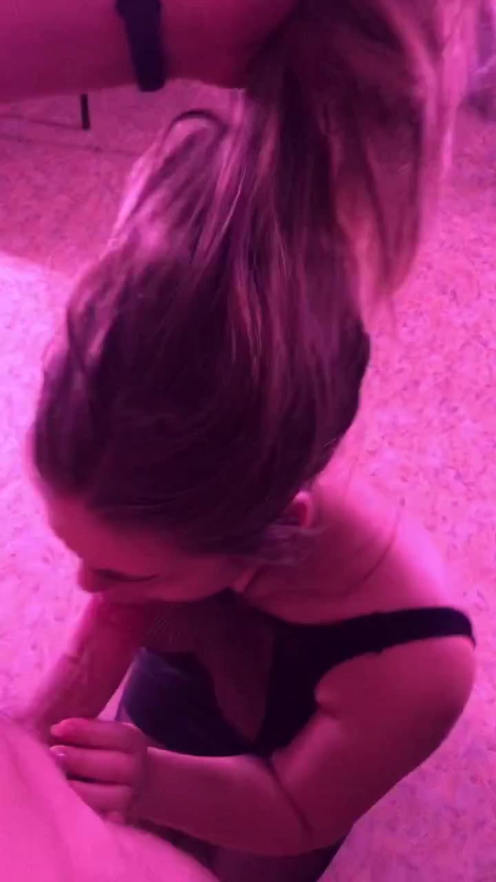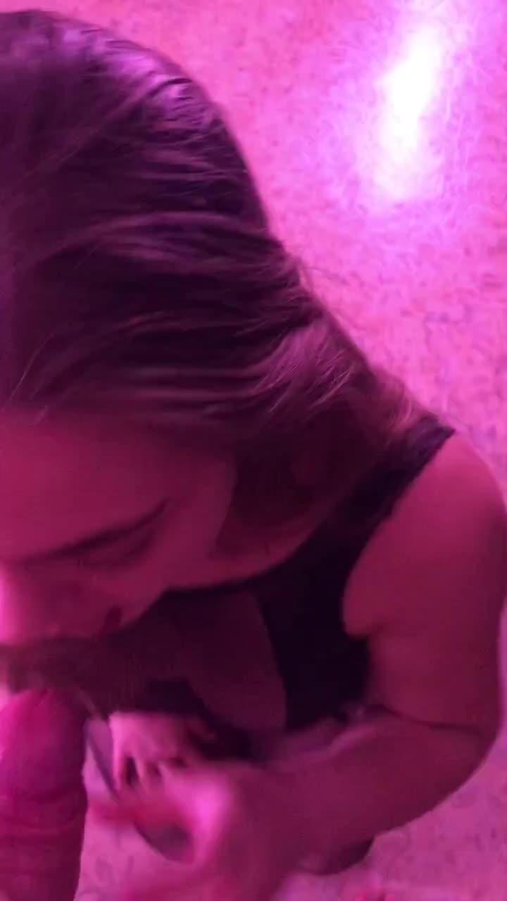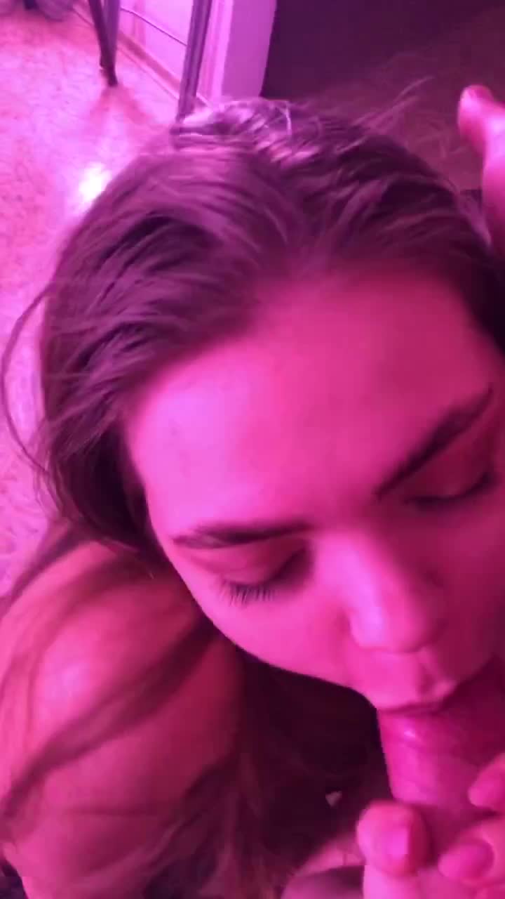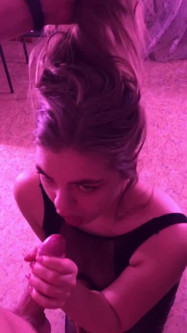 Молодая брюнетка лазит по комнате, а потом активно сосет член у парня