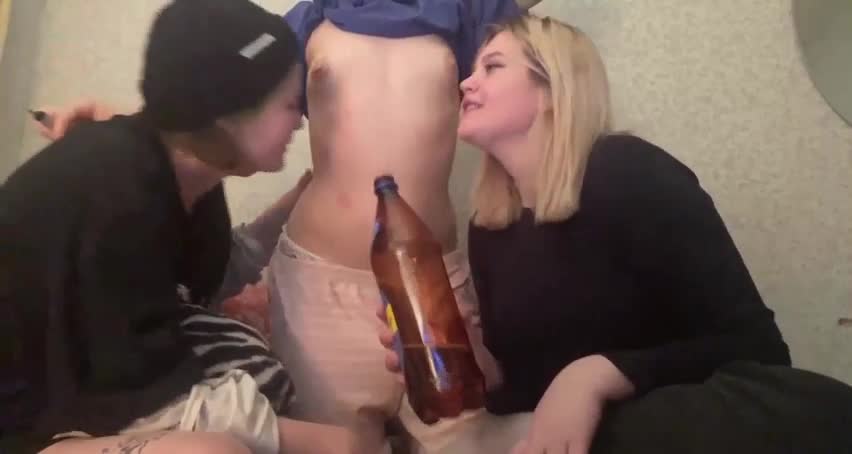 две подружки целуют третью оставляя на её теле засосы показывая по камере