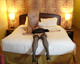 Молодая замужняя шлюха в чулках и наряде предоставляет интимные удовлетворения