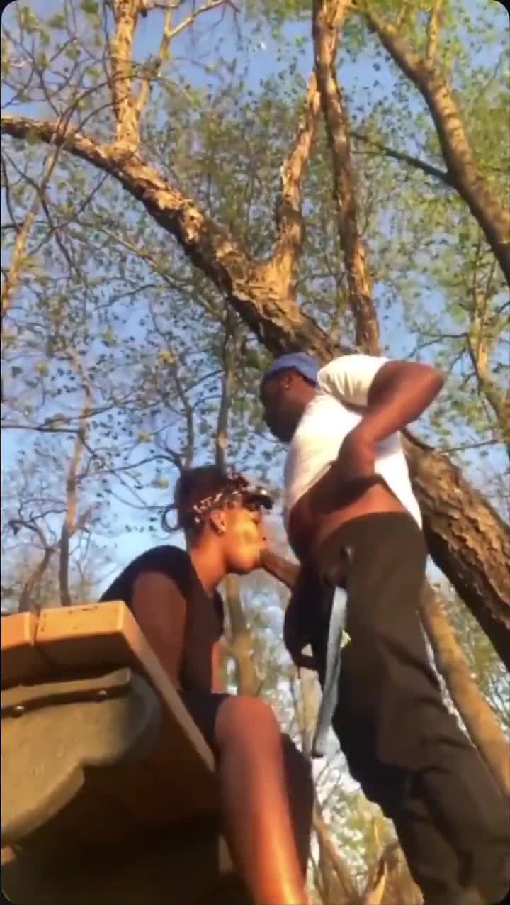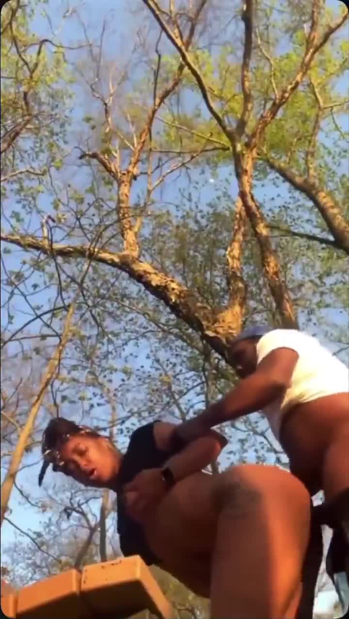 Парочка афроамериканцев занимаются сексом на лавочке