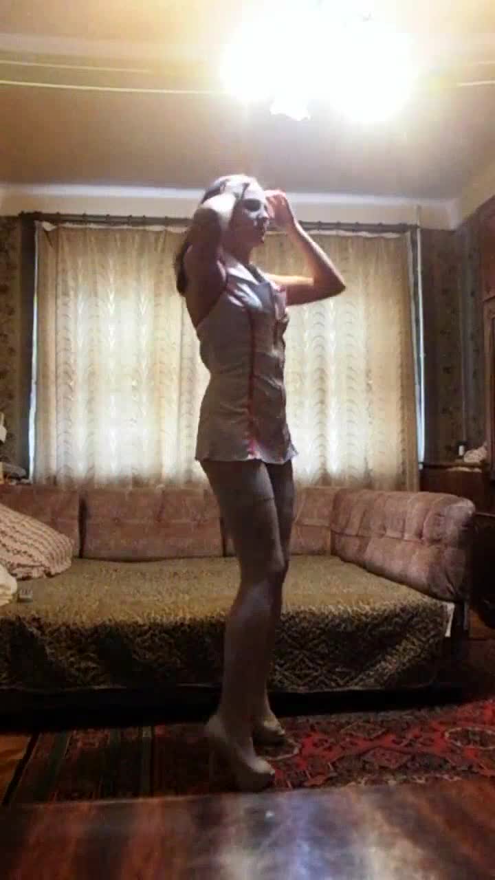 Стройная девчуля записала дома на ковре любительский стриптиз