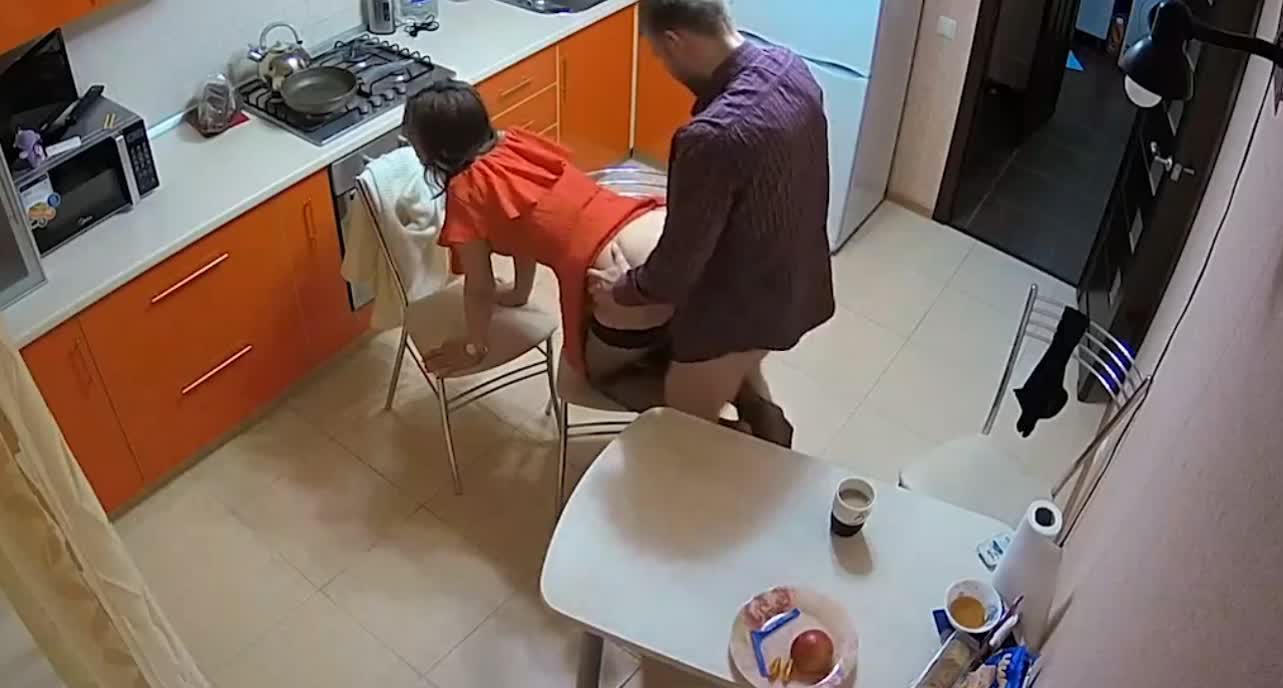 Хорошо прямо на кухне сучку отпорол не раздеваясь полностью