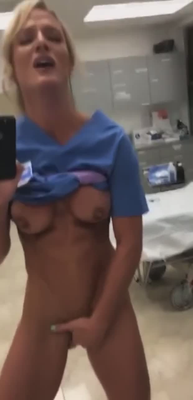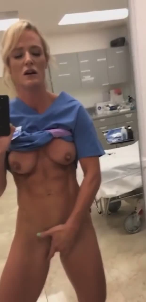 Спортивная медсестричка с поджарой фигурой мастурбирует и кончает снимая процесс на камеру телефона.