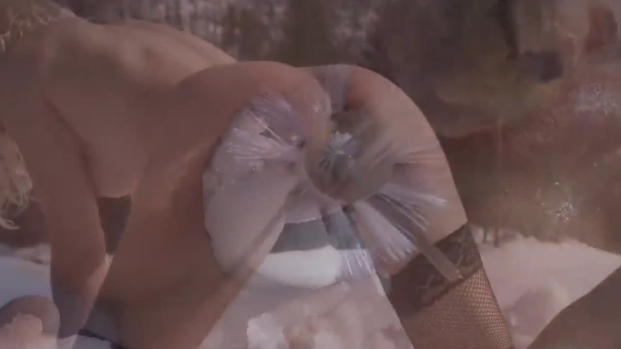 Блондинка и брюнетка пытаются погасить свою бешеную сексуальную страсть в снегу.
