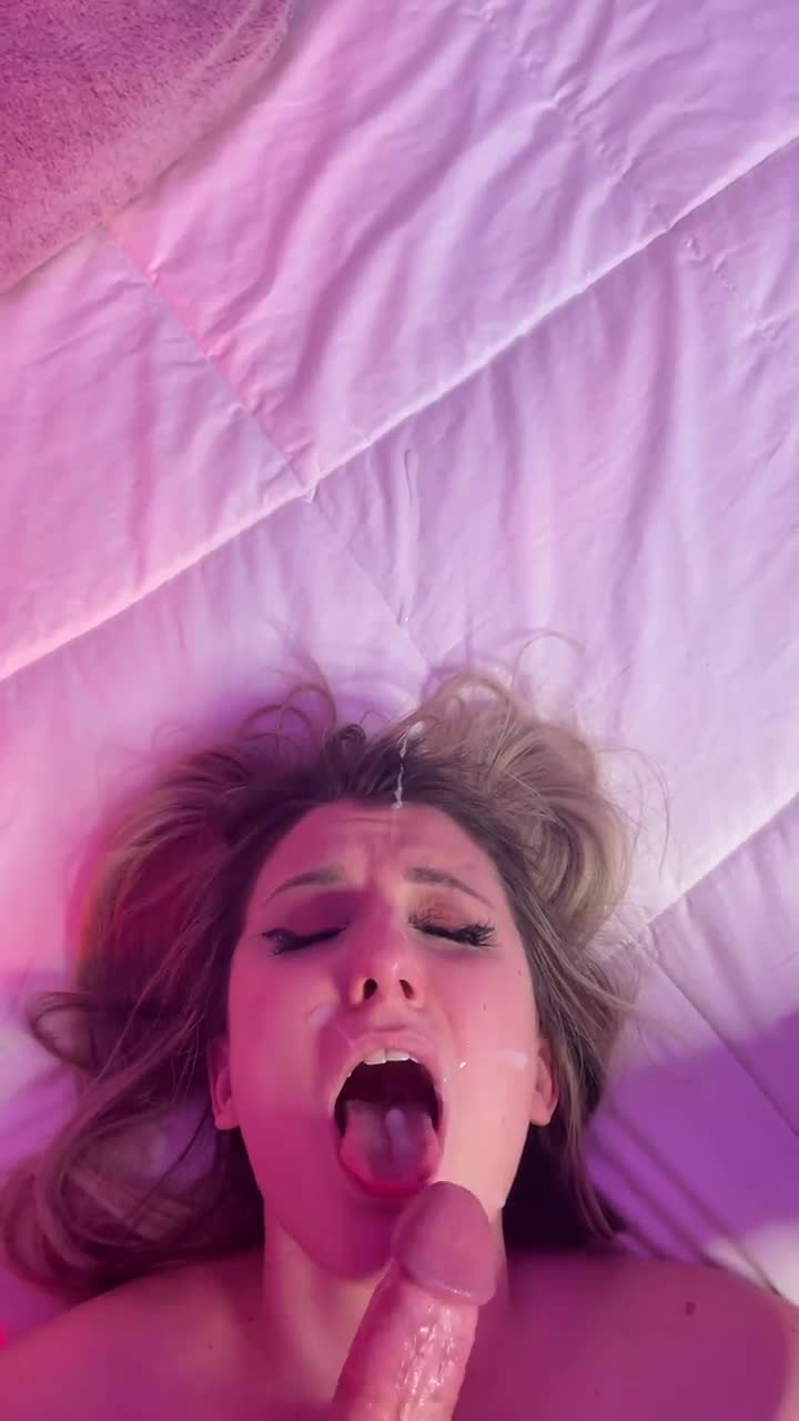 Красивая шлюшка получает хорошую порцию спермы после удачного отсоса.