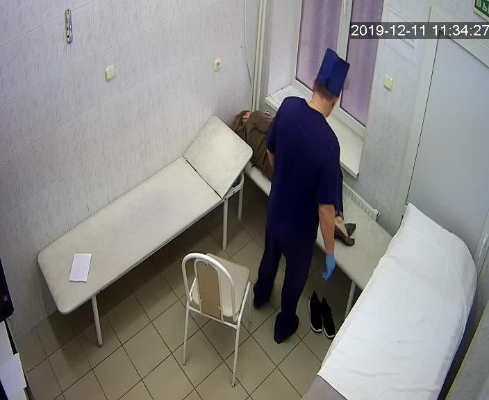 Врач проводит обследование ануса молодой женщины при её матери.Процедуру снимает скрытая камера.