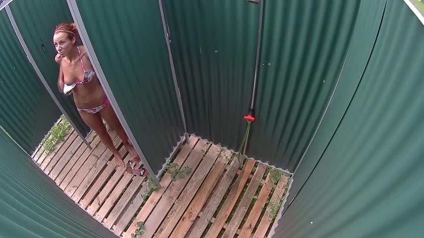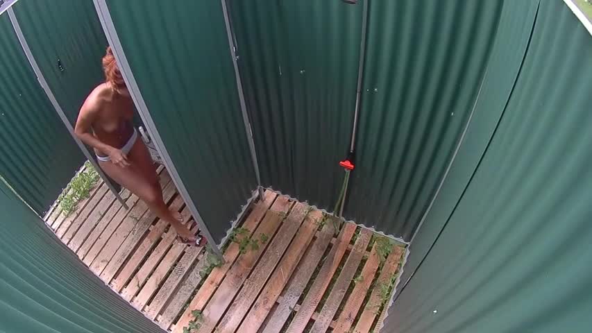 Скрытая камера в пляжном душе, засняла симпатичную девушку.
