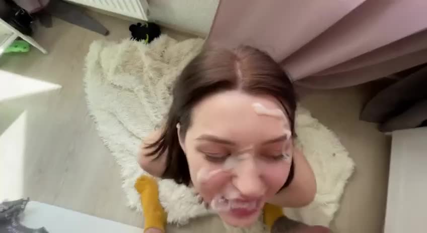 Аккуратно все на личико слил. До шторы сперма не долетела