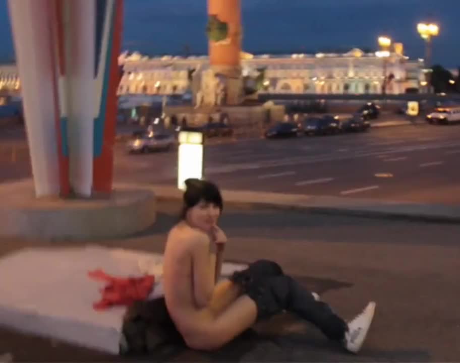 Девка в Питере разделась и пыталась удовлетворять себя, периодически стесняясь прохожих.
