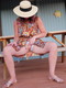 Решила немного пошалить во время отдыха и приспустить свои трусы.