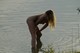 Парень фотографирует свою тёлочку на берегу реки