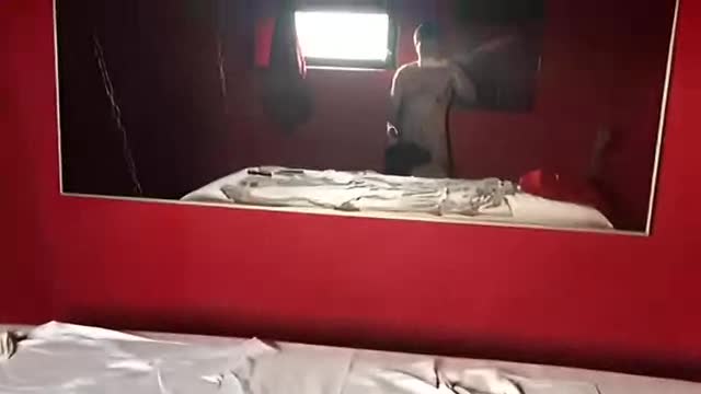 Чувак снимает сперва через отражение в зеркале, как проститутка сосет, потом как трахает ее раком