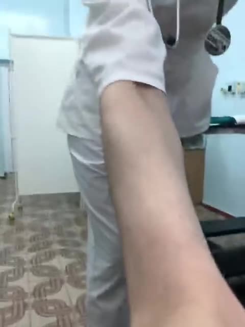 Молодая стройная девушка доктор на рабочем месте мастурбирует свою бритую писечку!