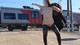 Какой яркий порыв на переезде мимо проходящей электрички. Наверняка мужички, кто у окна сидел прилип.