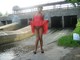 Красотка гуляет по городу в платьице без трусиков и рада показать свою киску.