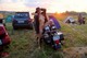 Девушка голая , только шляпка на ней , гуляет среди брутальных дядек байкеров