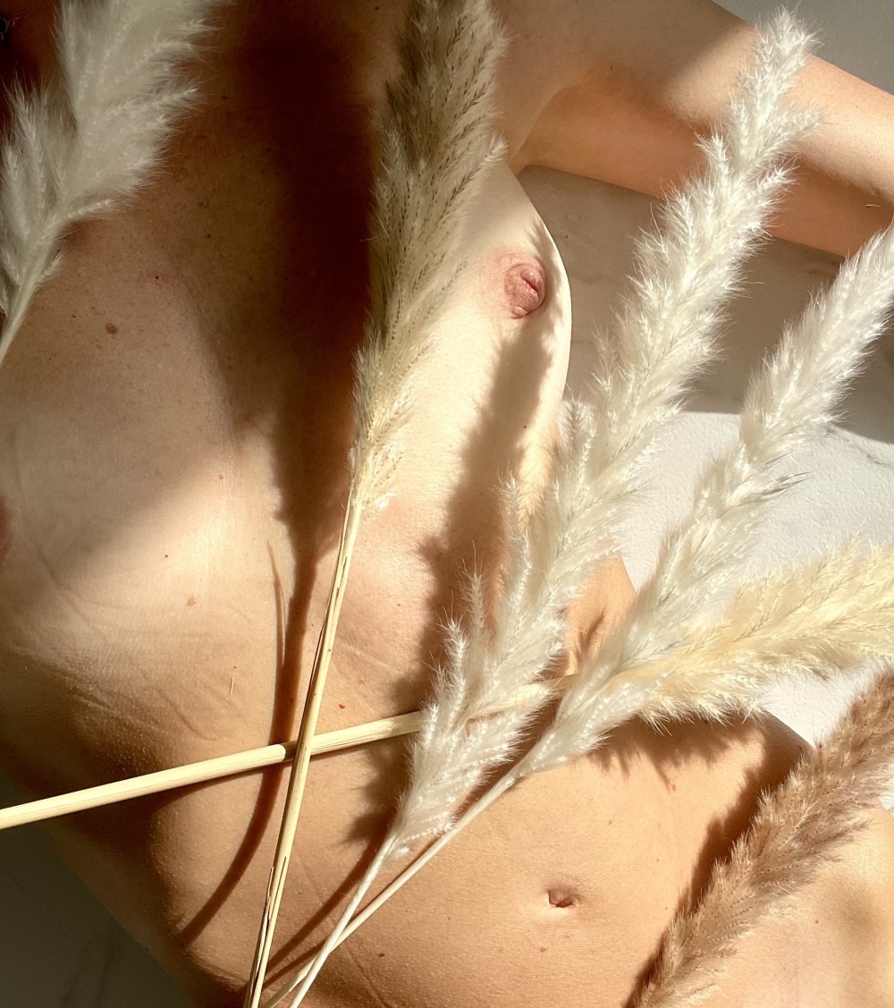 Очаровательная грудь прекрасной девушки совсем не скрывается за пшеничными стеблями и вызывает страстное томление и желание ее взять и не раз.