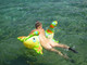 Сергей фотографирует жену на речке с надувным дракончиком.