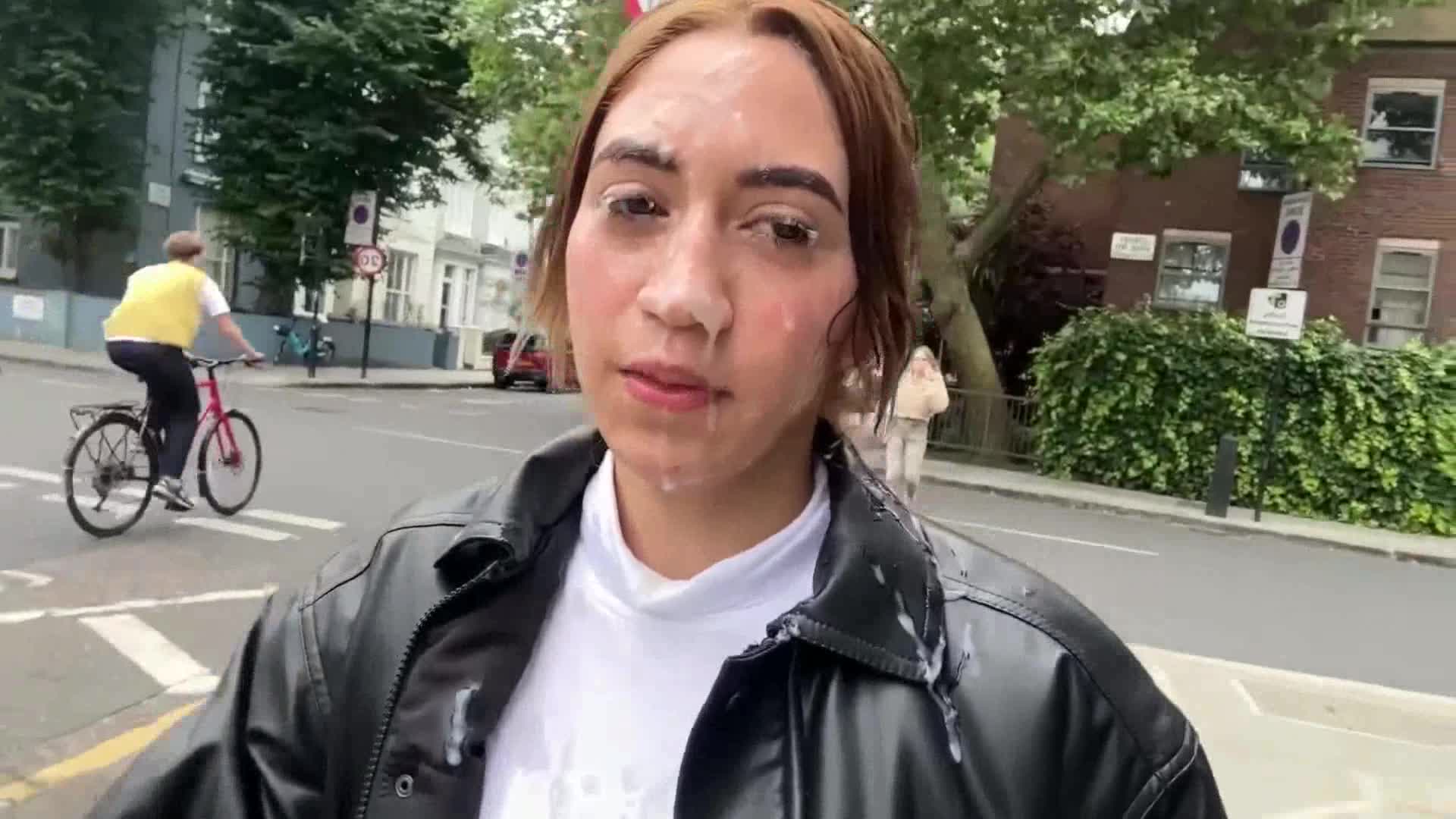 Какая красотка идёт по улице. Сперма - лучшее украшение для её личика