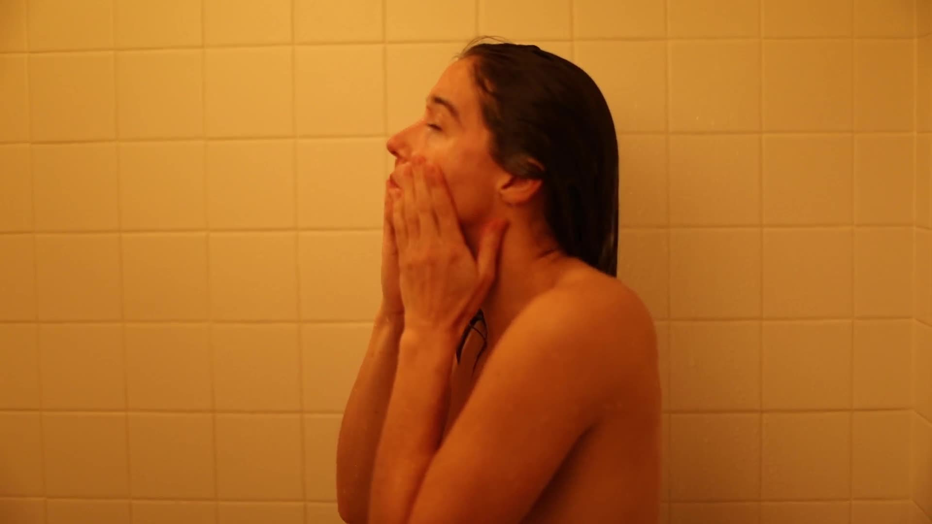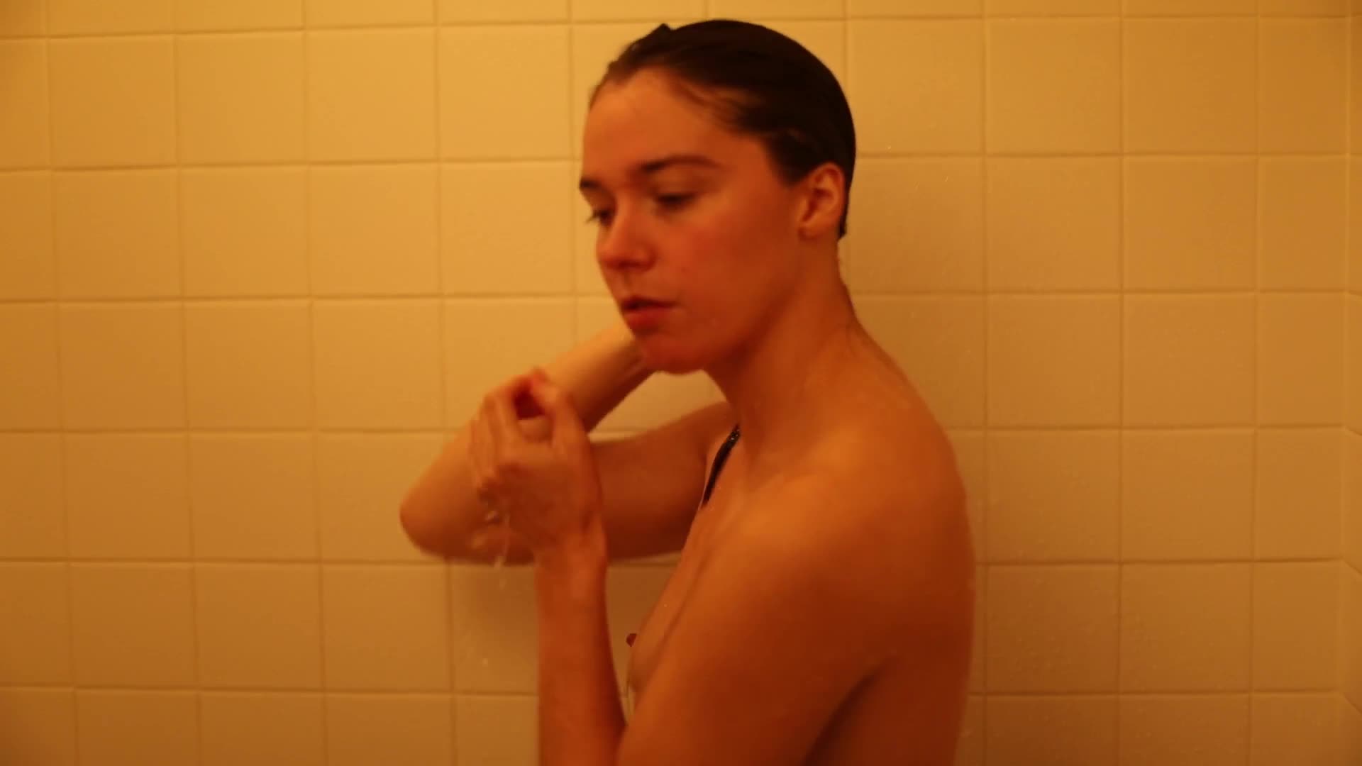 Девочку сняли на видео во время купания. Когда она поняла, что произошло, она явно обрадовалась.