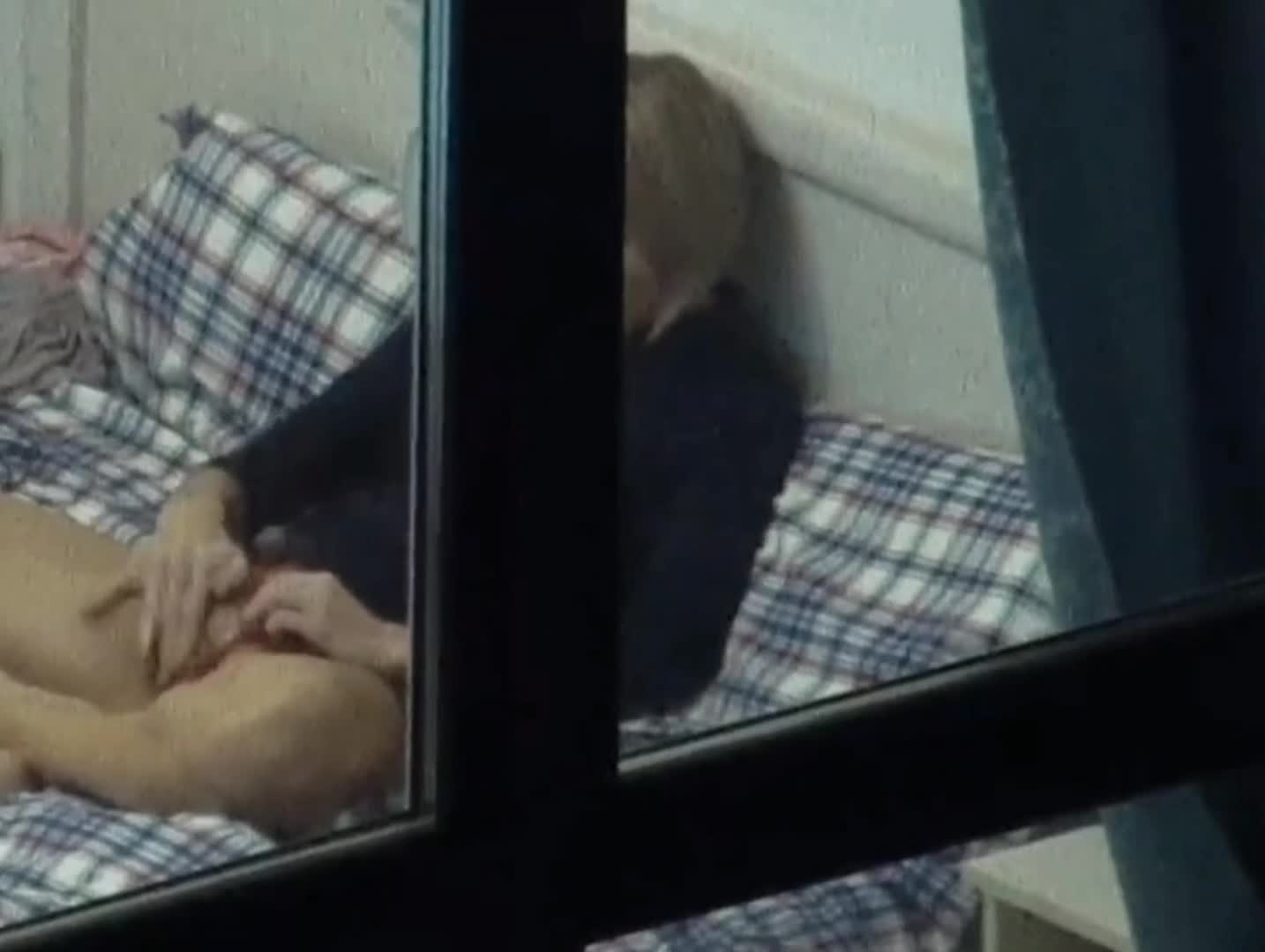 Сосед снял через окно,как женщина интенсивно мастурбирует рукой.