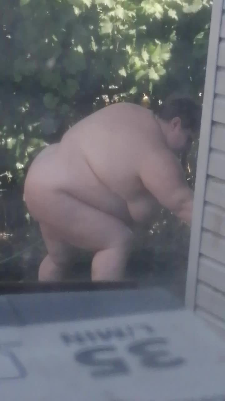 Любимая на даче поливает себя из шланга