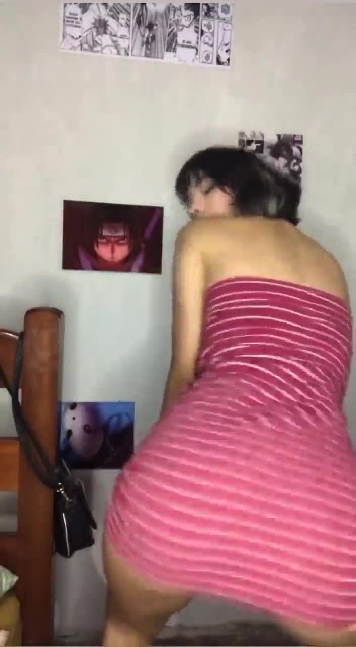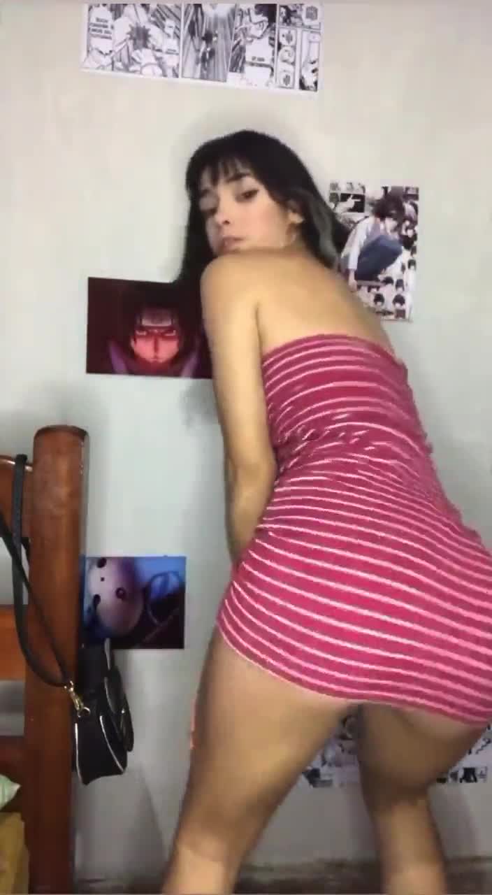 Девка крутит жопой в платье без трусов