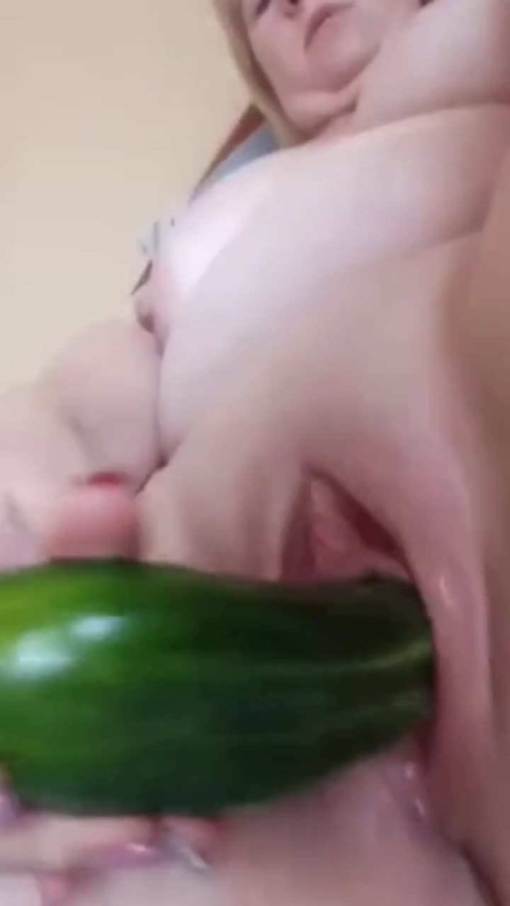 Зрелая дама не смогла отказать себе в удовольствии побаловаться огурцом.