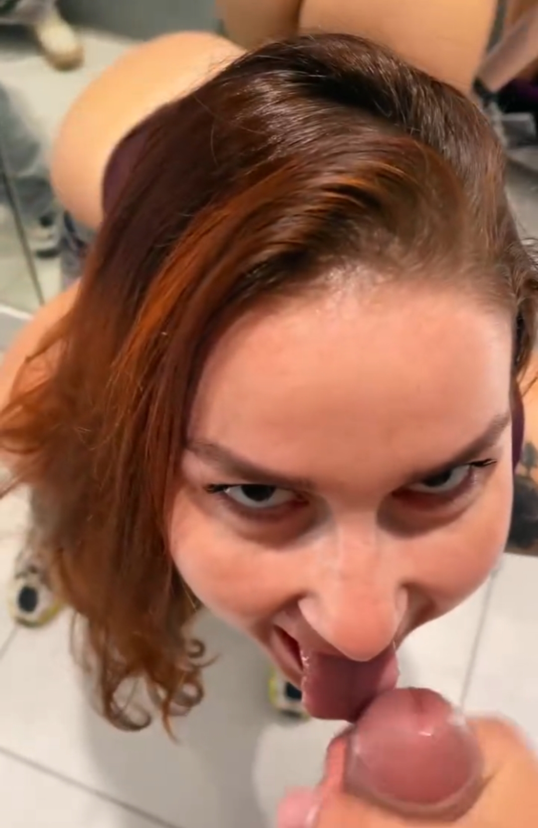 Молодая семейная пара Виктория и Никита забавляются в примерочной одного из московских торговых центров. Сначала минпт,а затем секс с окончанием в рот девочке.