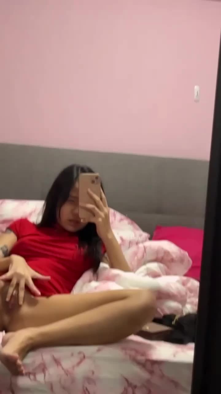 худенькая девушка снимает свою селфи-дрочку