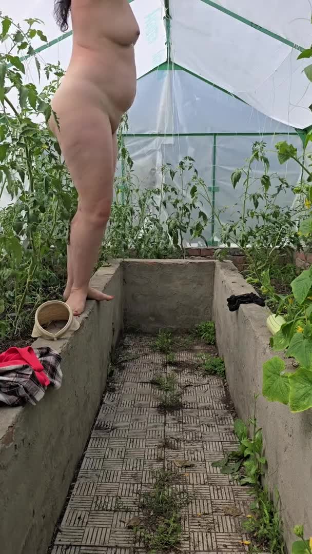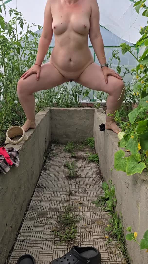 Показ в теплице-это необычно. Но тело очень даже хорошее. А уж попка великолепна.