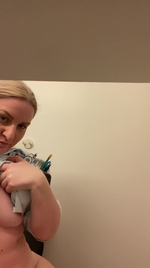Блондинка-медсестра демонстрирует свою обнажённую часть тела, пользуясь перерывом на работе.