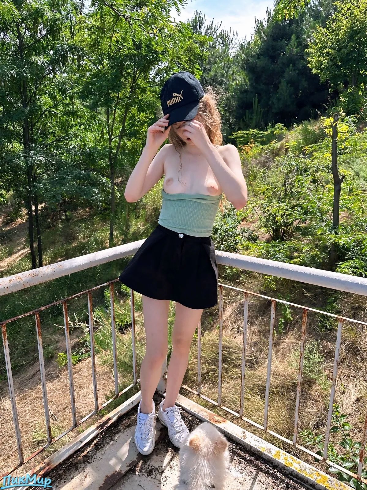 Худенькая девушка охотно показывает себя