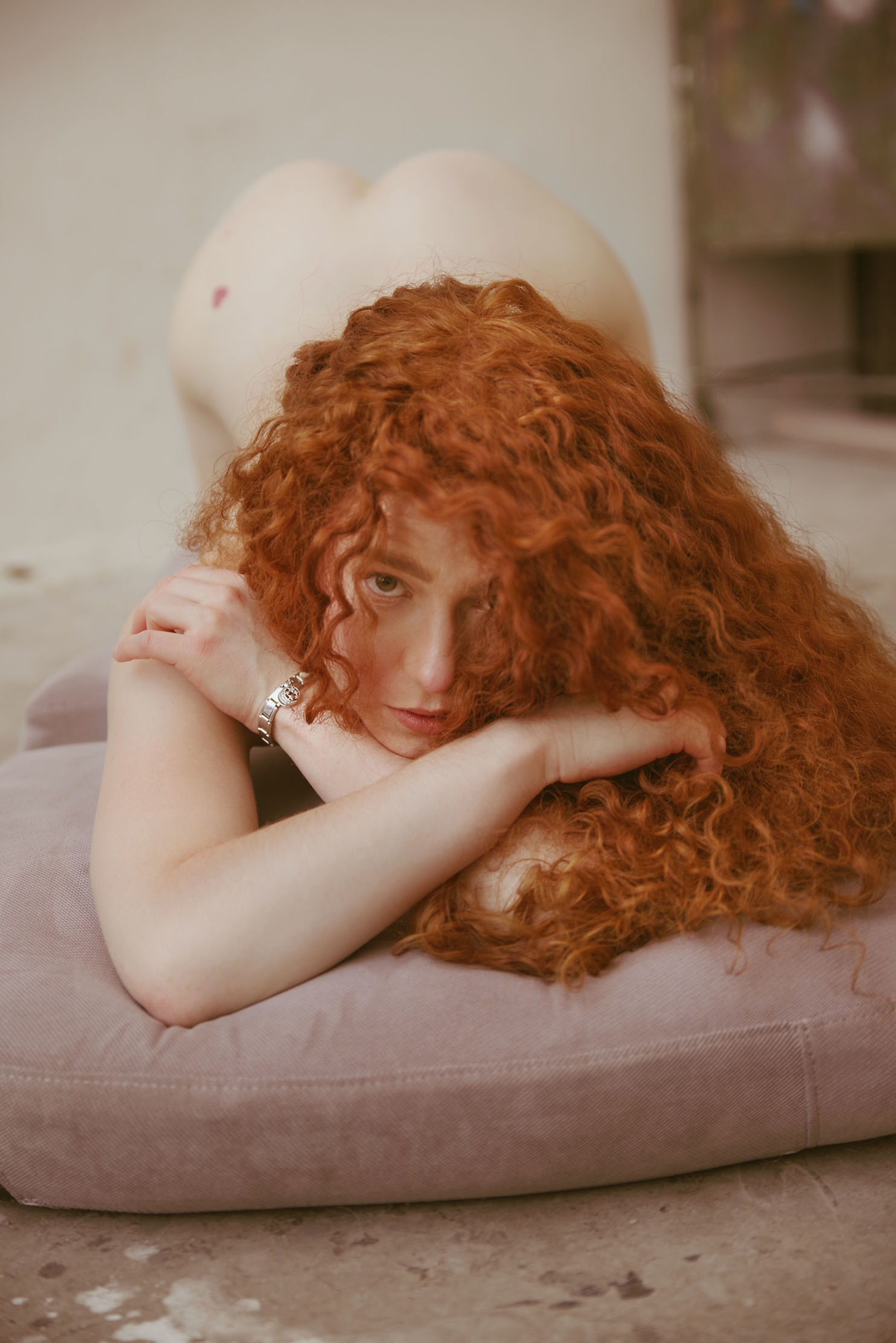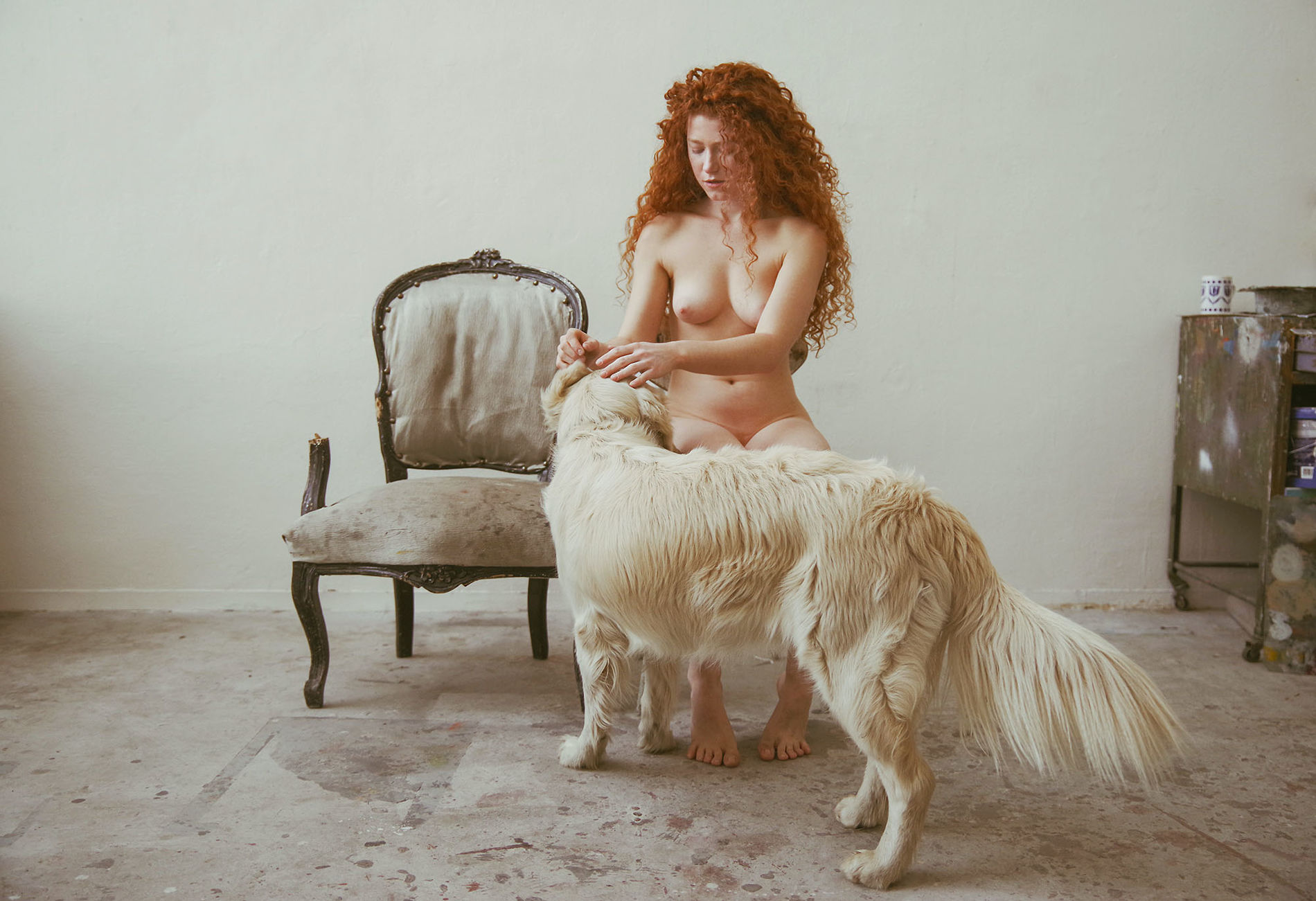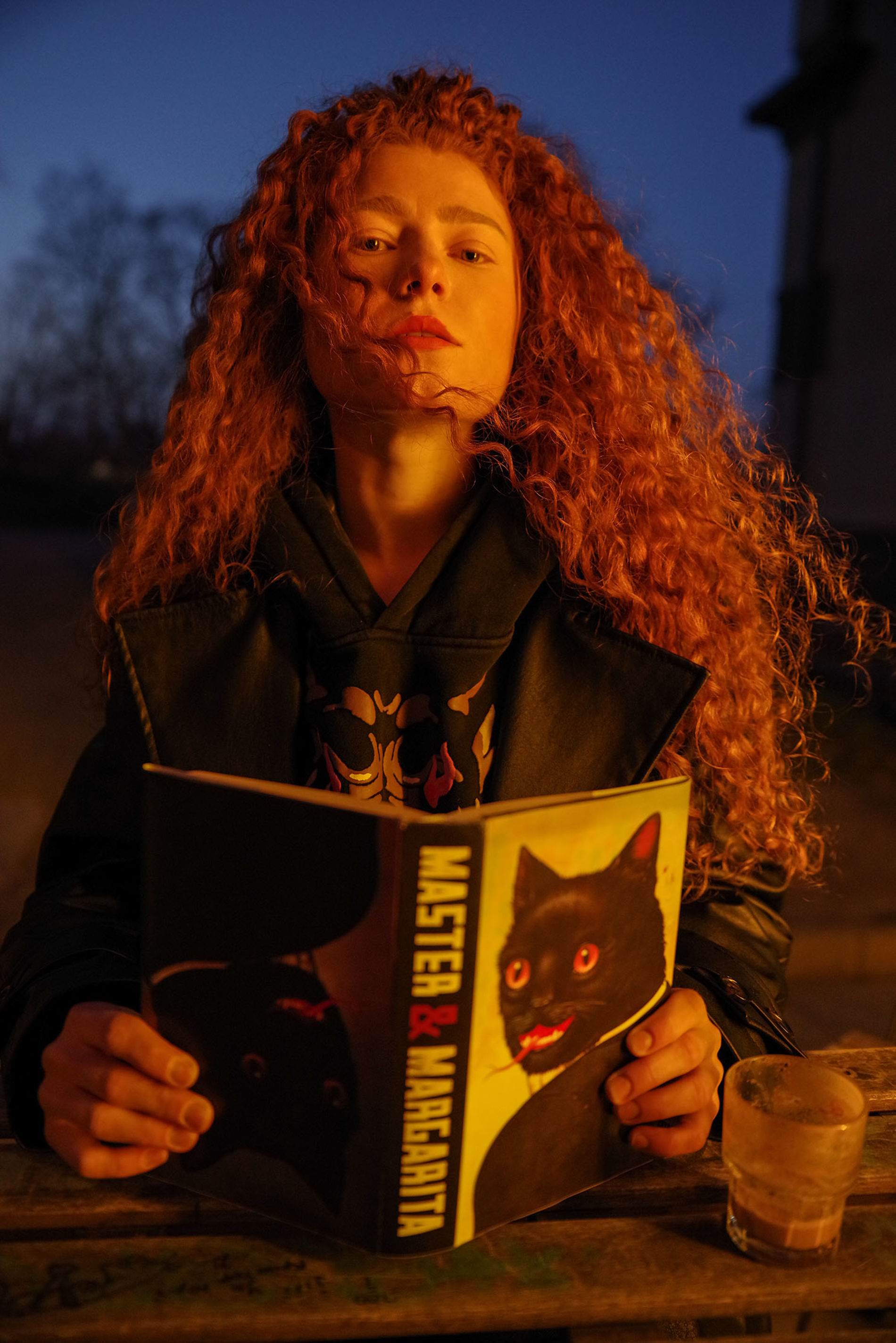 арт с рыженькой на каком то ремонте. в кадр попала "Мастер и Маргарита"
