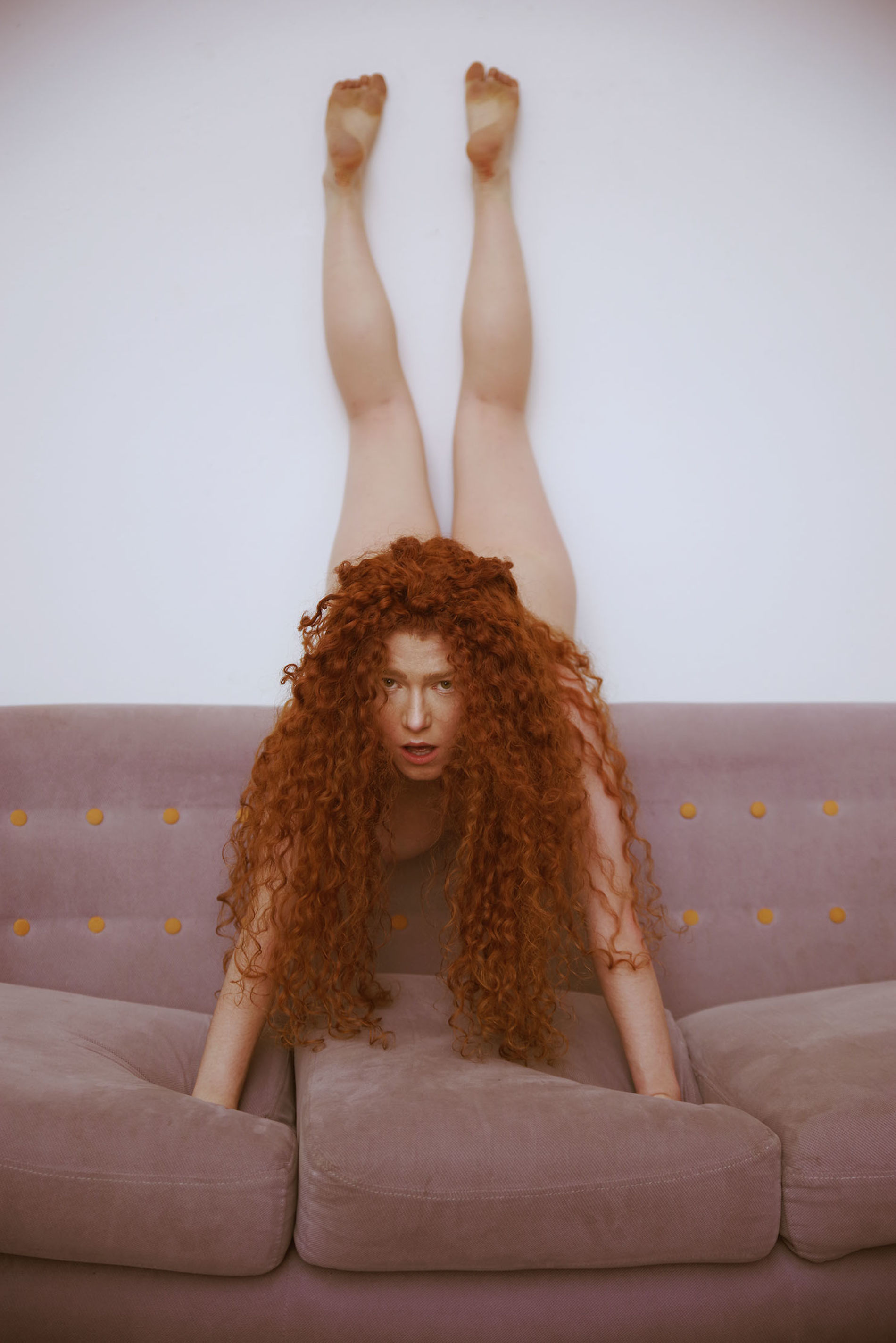 Рыжеволосая красотка в интересных эротических позах