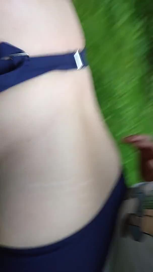 Мужчина раком трахает на природе зрелую женщину в купальнике и кончает внутрь!