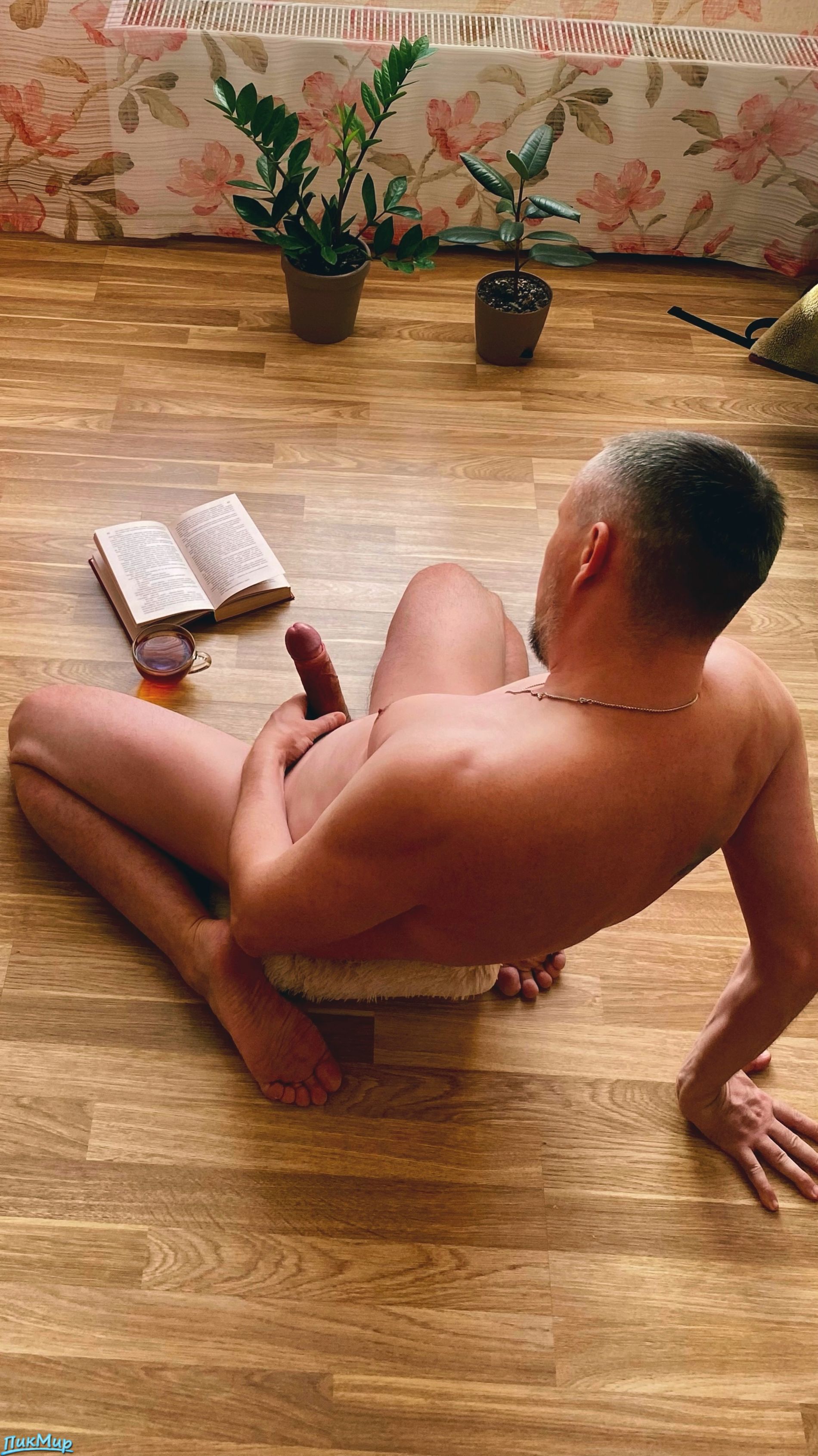 Как всегда великолепно! Прекрасное тело, красивый член, и судя по книге и очкам, еще и начитанный!