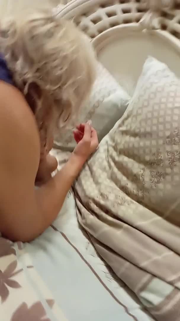 Зрелая женщина стоя раком на кровати даёт раком и сосет дилдо!