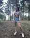 молодая с тату на ляхе. а джинсовые шорты ей как раз