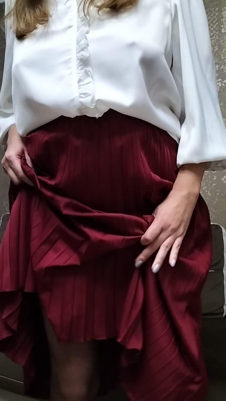 Классно! Судя по торчащим соскам - под блузкой тоже красота прячется