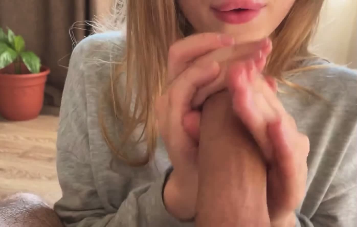 Дрочит и ласкает член, хочет сперму получить