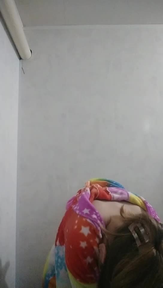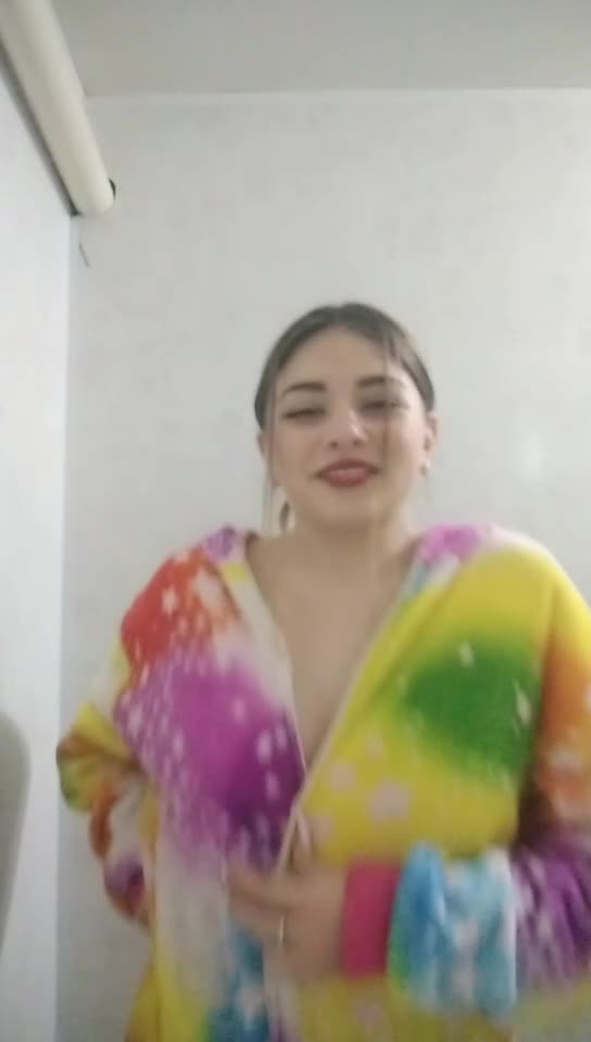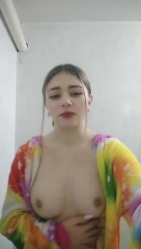 Скромничая и немного смущаясь светит своими сиськами в какой то онлайн трансляции